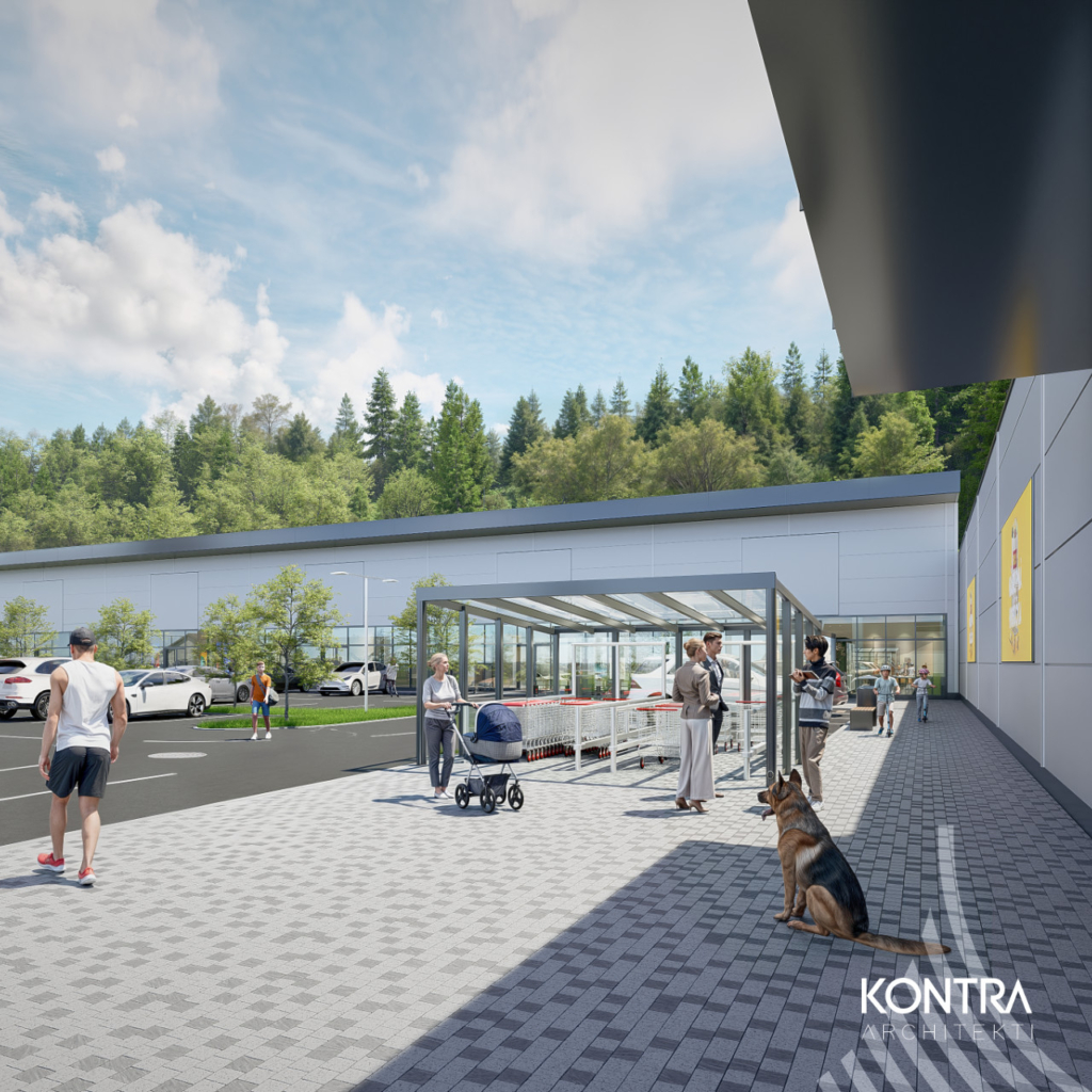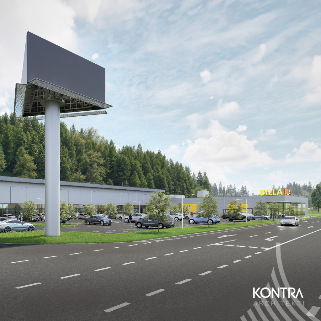Návrh obchodného centra a supermarketu je osadený v území určenom pre občiansku vybavenosť, ktorá bude prístupná aj z okolitých obcí a miest. Návrhom obchodného areálu dôjde k zmene dopravnej situácie vybudovaním priesečnej križovatky s odbočovacími pruhmi. Pri návrhu a technickému riešeniu bol kladený dôraz na potreby parkovania, odvodnenia plôch ako aj ekonomicky riešené konštrukcie stavby.